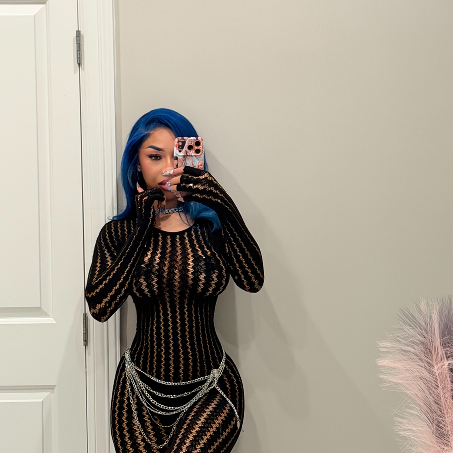 A full-length lace jumpsuit with long sleeves and a body-hugging fit that highlights every curve while keeping it sleek and sexy.